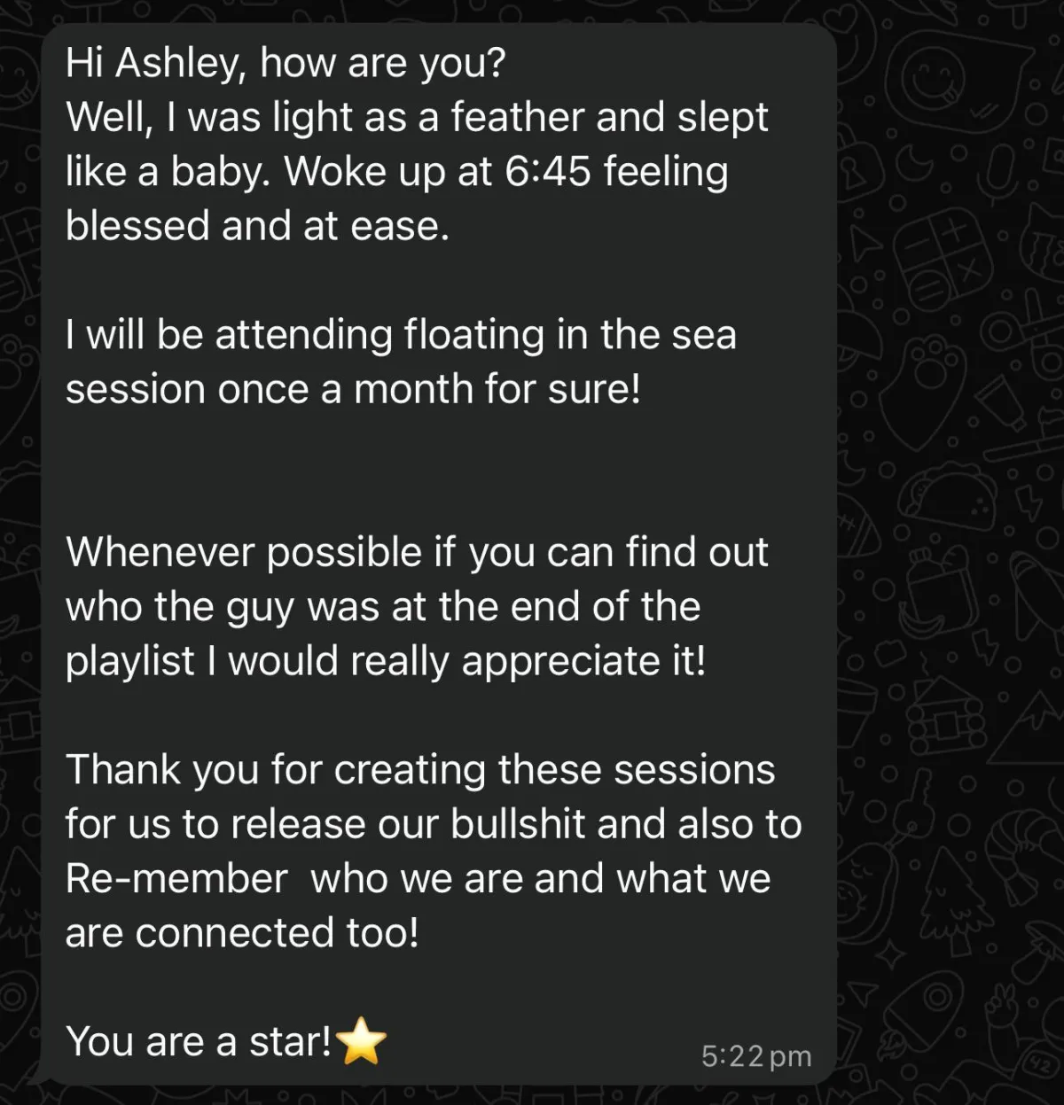 “Their sessions helped me find calm and clarity. Each class brings peace and strength I carry into daily life. I’ve never felt more connected to my body and mind.”